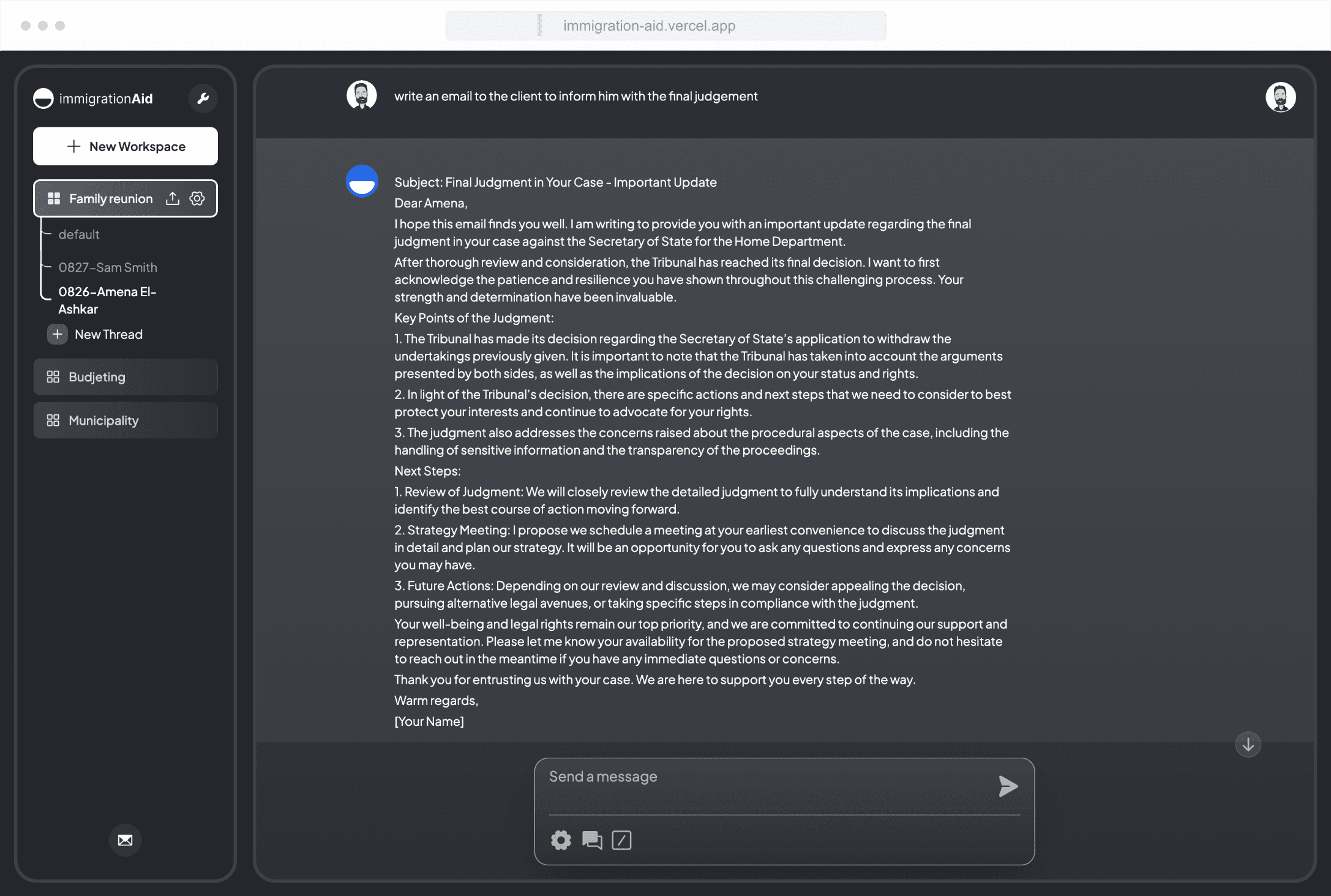ImmigrationAid has transformed how we manage our cases. Its ability to quickly digest and summarize complex cases is unmatched, saving us hours of manual work.